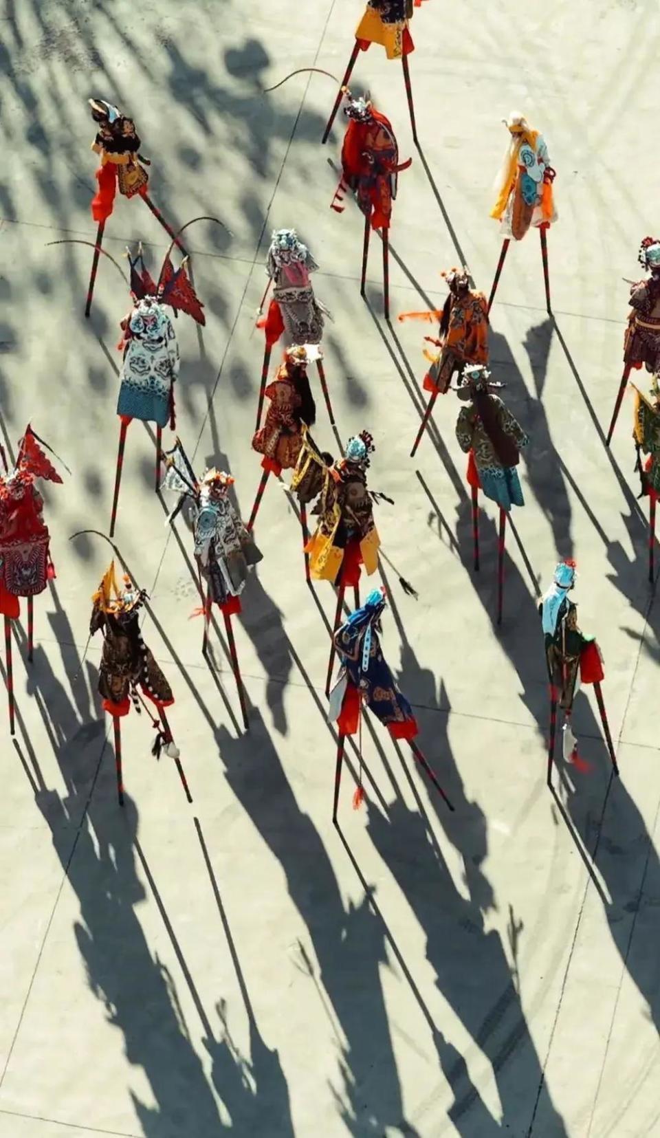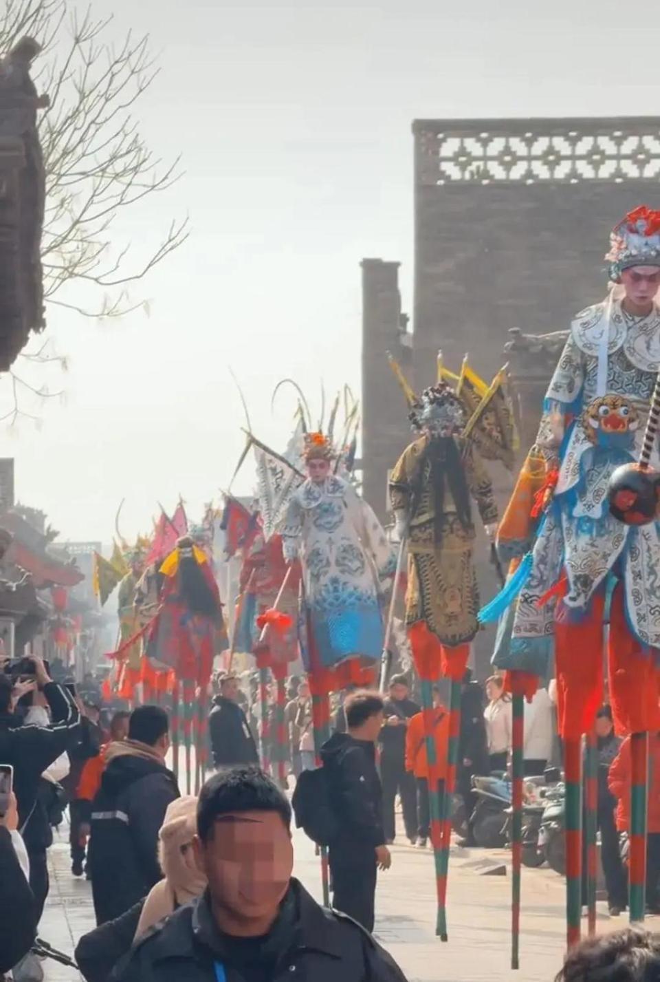 “醉关公”小林子团队来山西平遥进行踩高跷表演(来源:受访者)